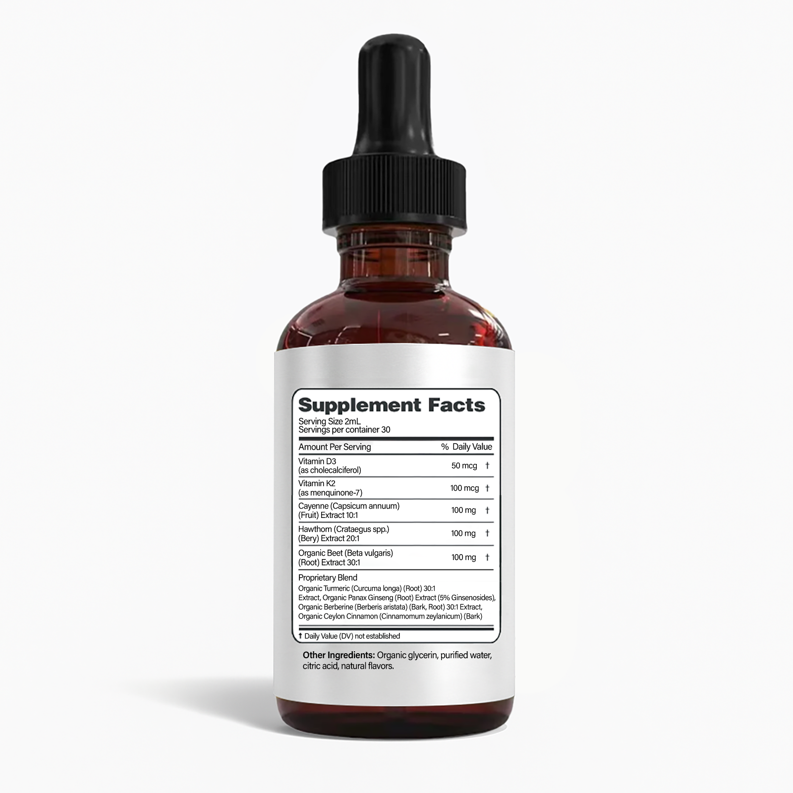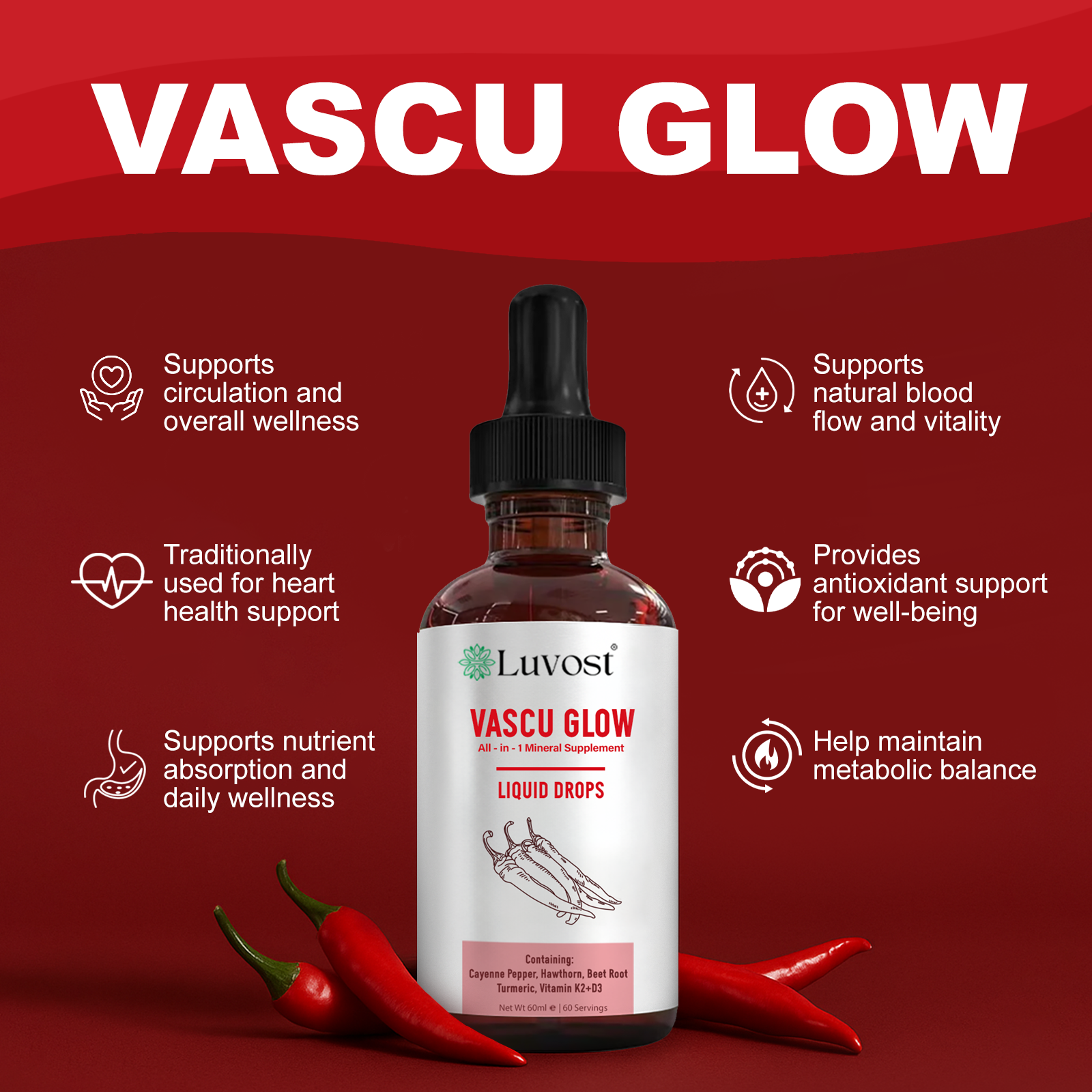 Formulated Vascu Flow Complex, featuring Cayenne Pepper, Hawthorn Berry, and Berberine to support heart health, circulation, and metabolism.